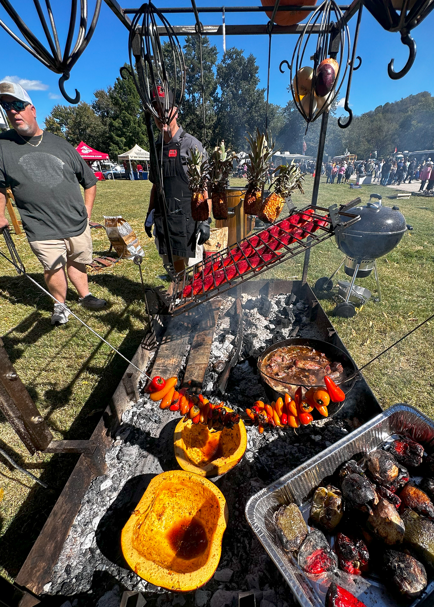 - konstrukcję do zawieszania produktów grillowanych lub opiekanych nad ogniem;